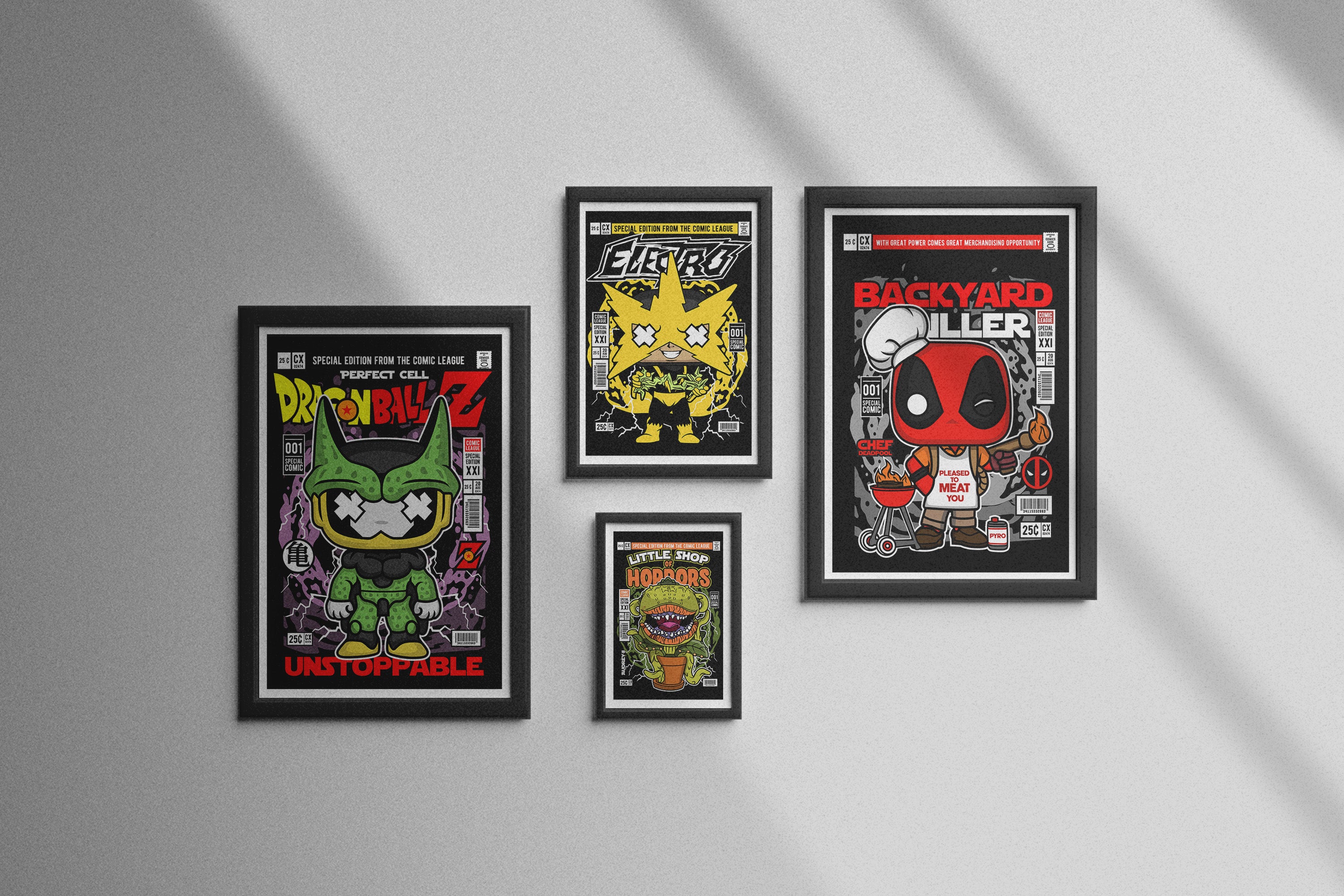 Museum-quality prints on matte paper with black or white frame options. Bold wall art for fans and collectors.