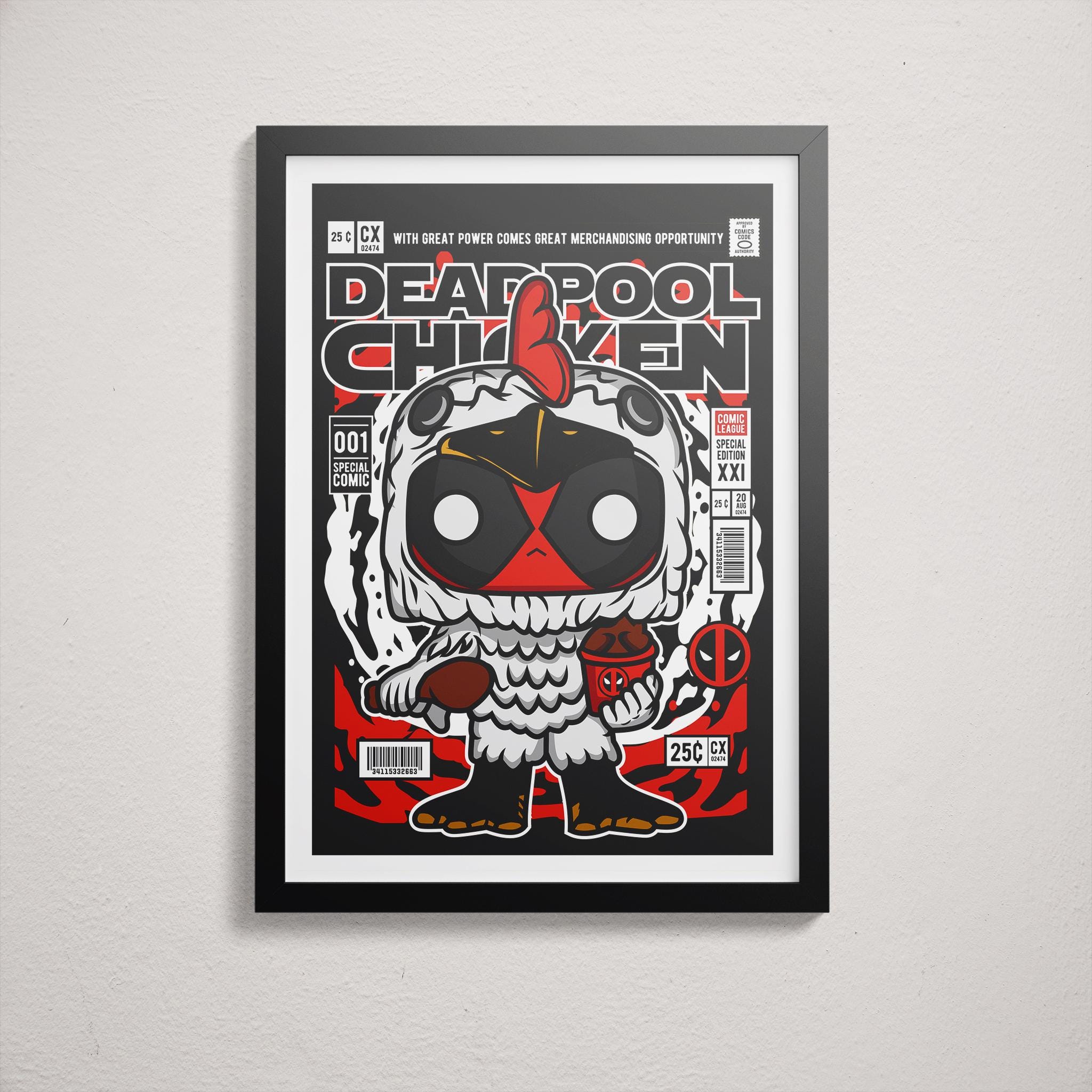 Museum-quality prints on matte paper with black or white frame options. Bold wall art for fans and collectors.